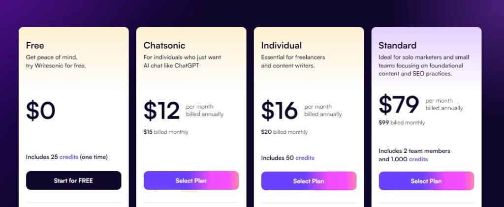 WriteSonic’s Pricing Plans Details